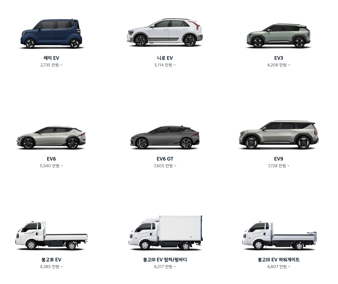 | 봉고Ⅲ 이브이(EV) 12% | 봉고Ⅲ 엘피지(LPG) 터보 10% | 더 2024 니로 이브이 9% |
